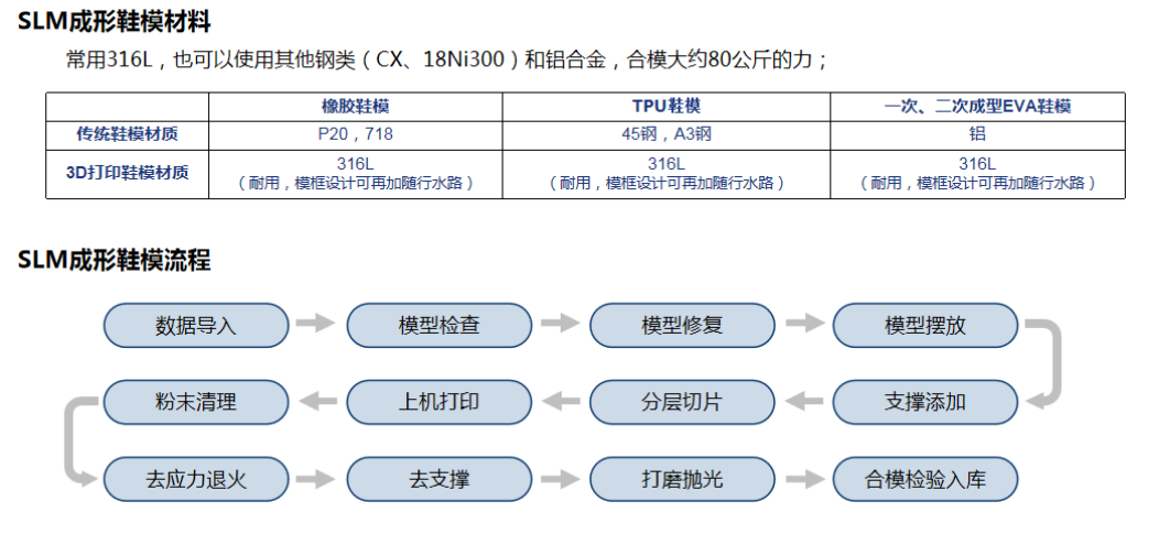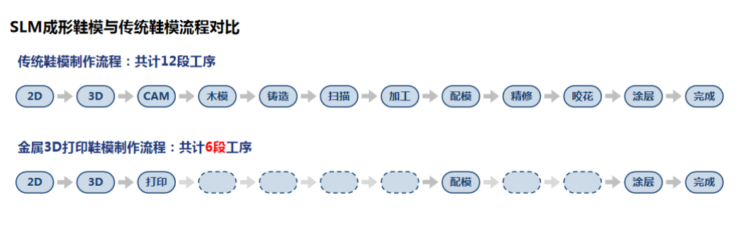 而工艺方面,立体光固化(SLA)和激光选区熔化(SLM)两种3D打印技术在鞋模生产领域的应用已被证实是可行的,并已经得到广泛推广。