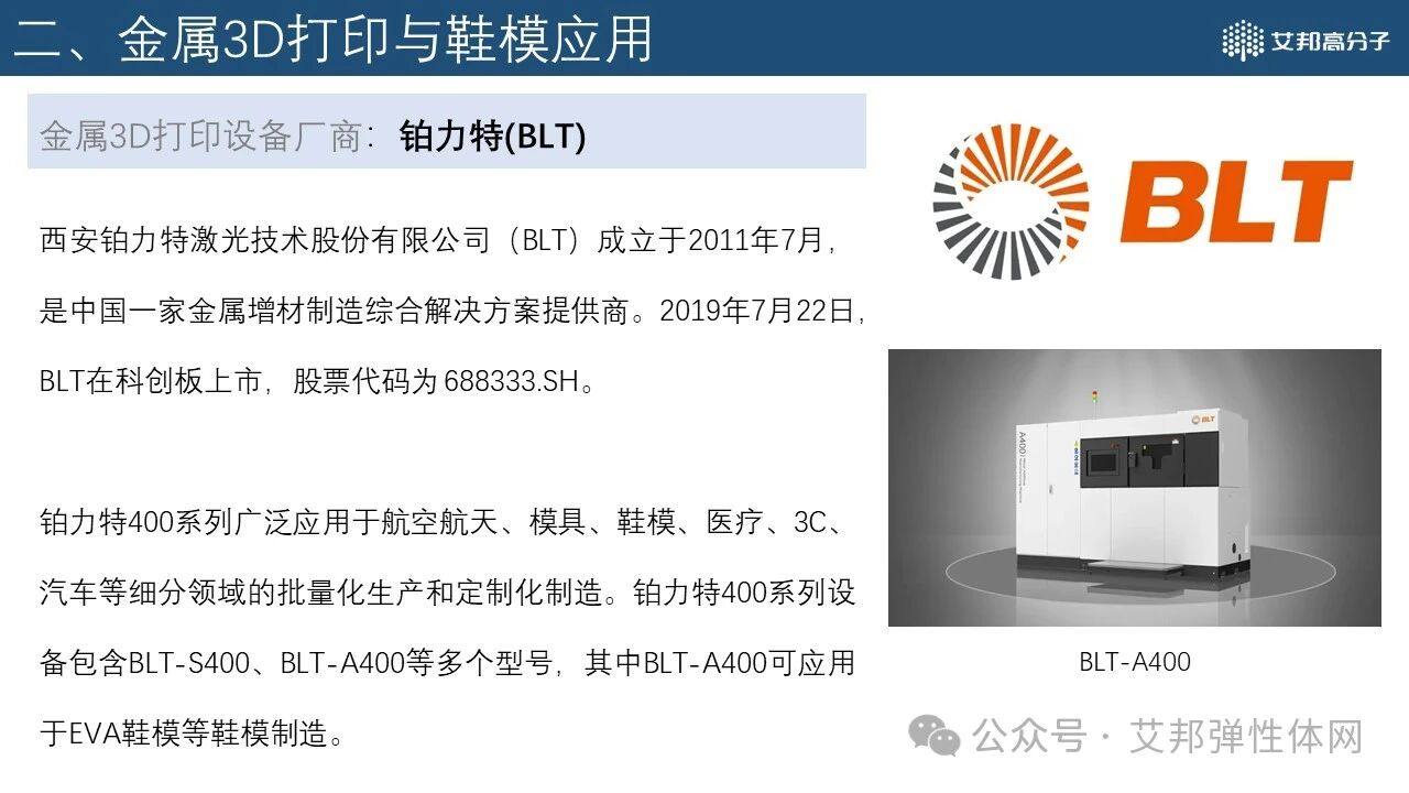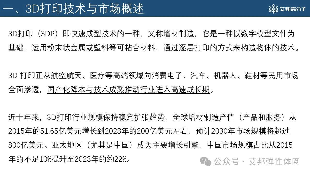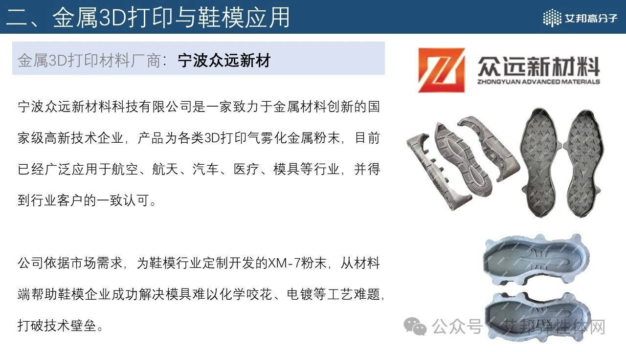 根据公开资料,艾邦为大家整理了2025年3D打印产业报告(鞋模&整鞋)PDF,限时(截止2025.3.26)免费分享,报告内容包含3D打印技术与市场概述、金属3D打印与鞋模应用、高分子材料3D打印与鞋业应用,以及相关材料、设备、加工等知名企业、新兴企业介绍,报告共50+页。需要本份资料的朋友可按照以下步骤操作即可免费领取:转发本文章链接至朋友圈,截图;②长按识别二维码,申请加群添加管理员微信,凭“文章转发截图”获取。(PS:已在群的请勿重复加群,转发后找管理员领取即可。)