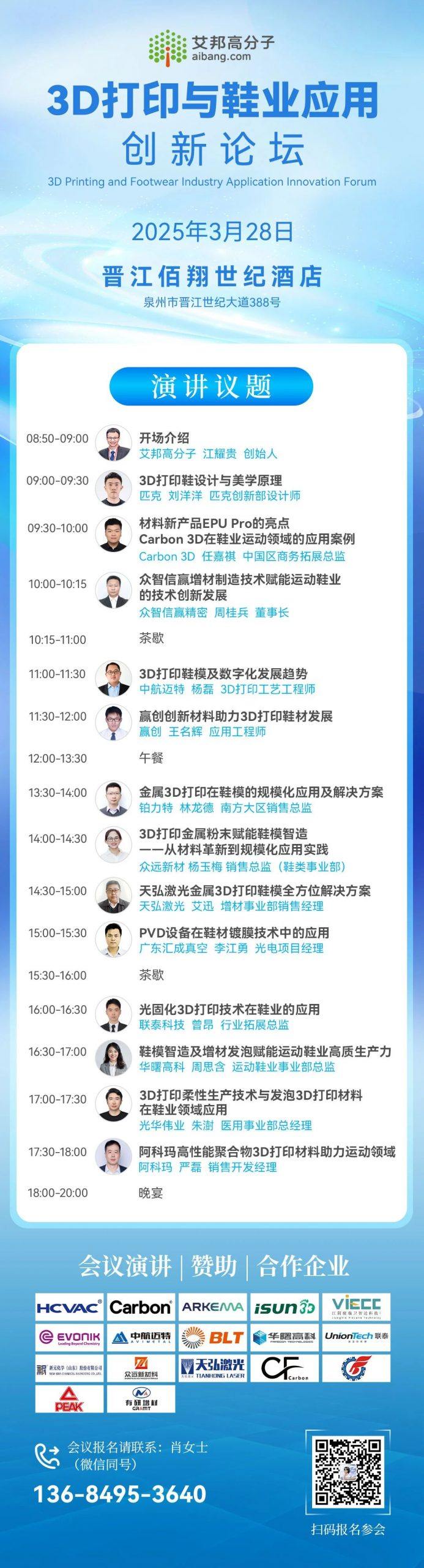 艾邦搭建了3D打印产业微信群,汇聚3D打印材料(金属、塑料)、设备、激光器、加工、鞋模及其他应用等行业资源,欢迎扫码加入: