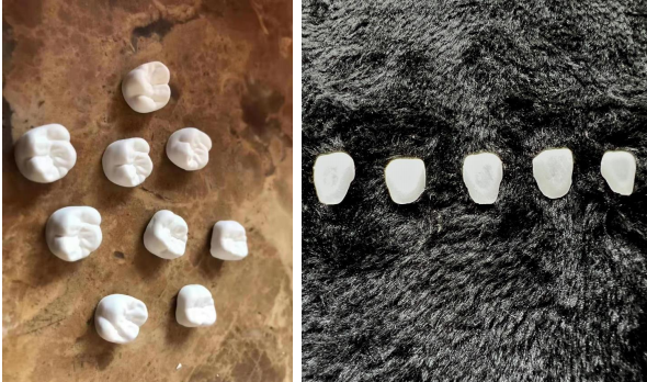 ·陶瓷材质 传统陶瓷义齿和美容贴面全部采用氧化锆锆块基础上CNC切削而成,具有材料利用率低、合格率低、生产效率低和成本高等缺点。采用自研的氧化锆浆料进行打印,合格率可以达到98%以上,成本显著降低。