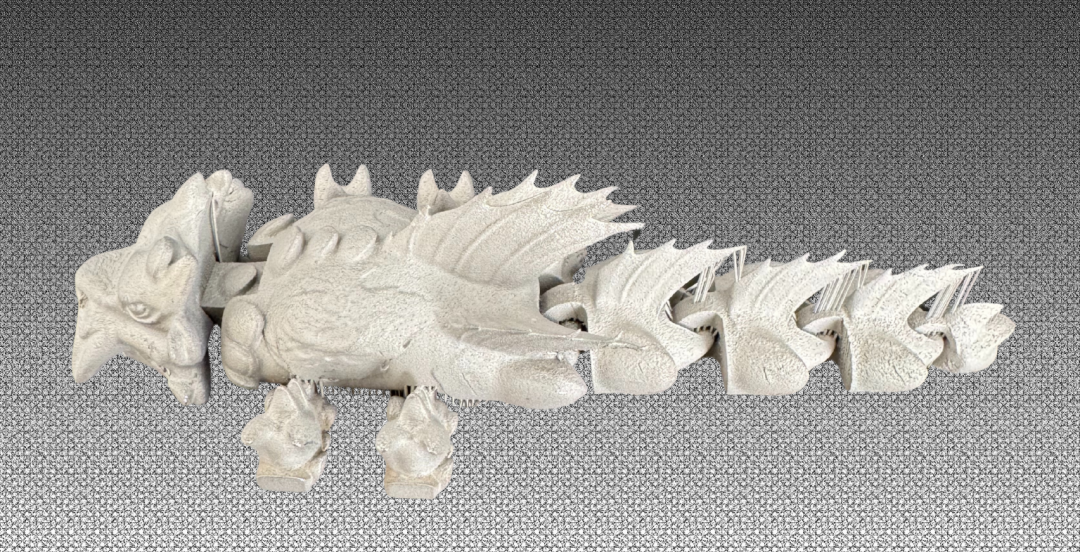 一体打印成型文创类产品,脊椎尾部灵活可摆动。