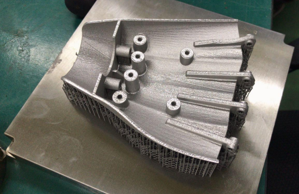 此零件传统是使用铸造的方法制造的,难点在于内部孔道和薄壁结构容易导致的浇不足、变形,从而造成成品率不高,其最薄处厚度只有0.5mm。改用3D打印后,通过合理的支撑设计,成品率得到了极大的提成,制造时间也由原本的一个月变成了五天时间,同时获得了很好的表面质量。
