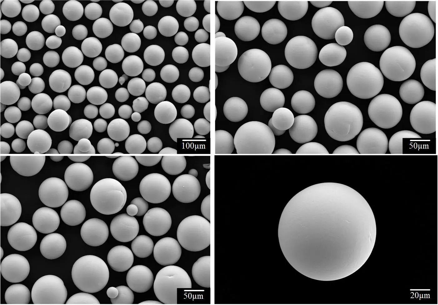 PREP制备的Cu粉末颗粒呈现非常规则的圆形截面,颗粒内部无明显孔洞,几乎没有空心粉。