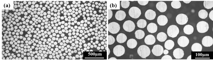 PREP制备的Cu粉末颗粒金相截面图(a)(b)