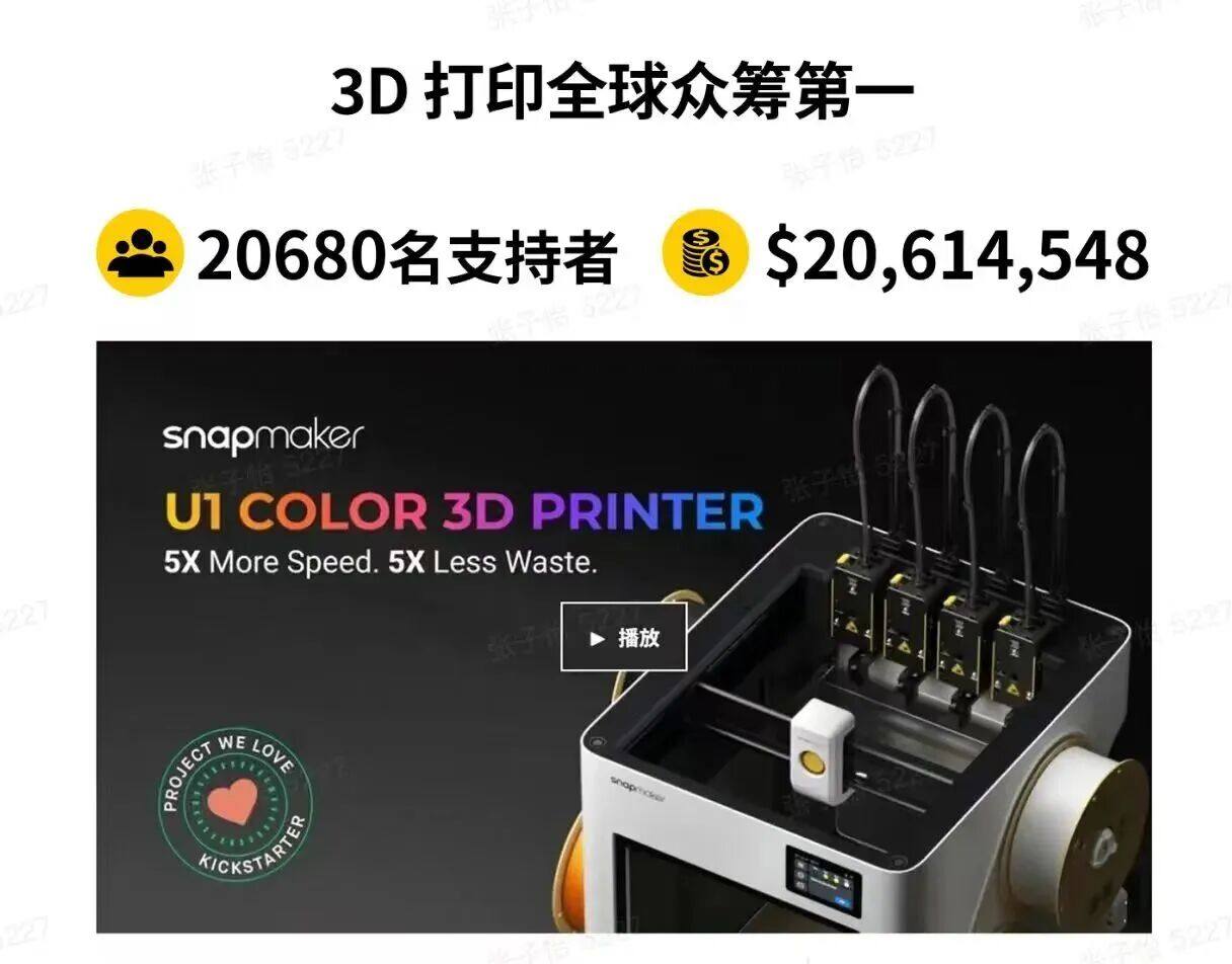 本次CES上,快造科技带来其最新的3D打印机产品——Snapmaker U1,该款产品打磨整整两年,在Kickstarter上的众筹金额达2061万美元,在全球消费级3D打印机众筹金额里位列第一。在此期间,快造科技也完成了B轮数亿元的融资。