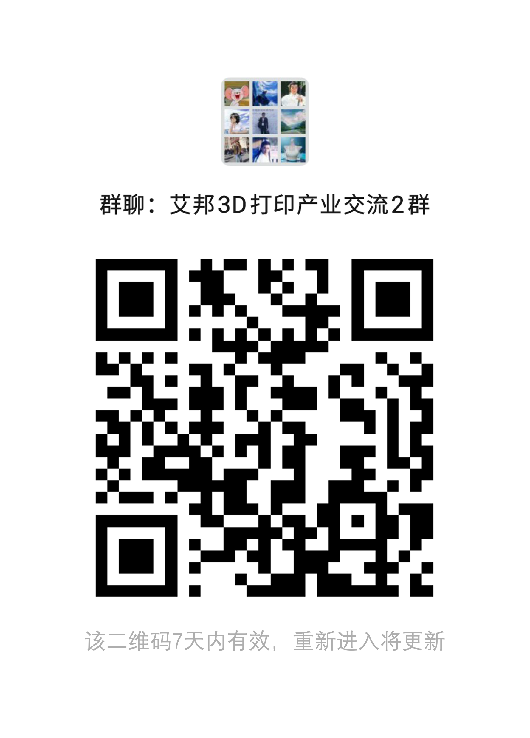 艾邦搭建了3D打印产业微信群,汇聚3D打印材料(金属、塑料)、设备、激光器、加工、鞋模及其他应用等行业资源,欢迎扫码加入: