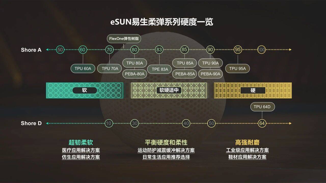 围绕消费电子中多样化的柔性应用需求,eSUN易生构建了完整的柔弹材料矩阵,包括: