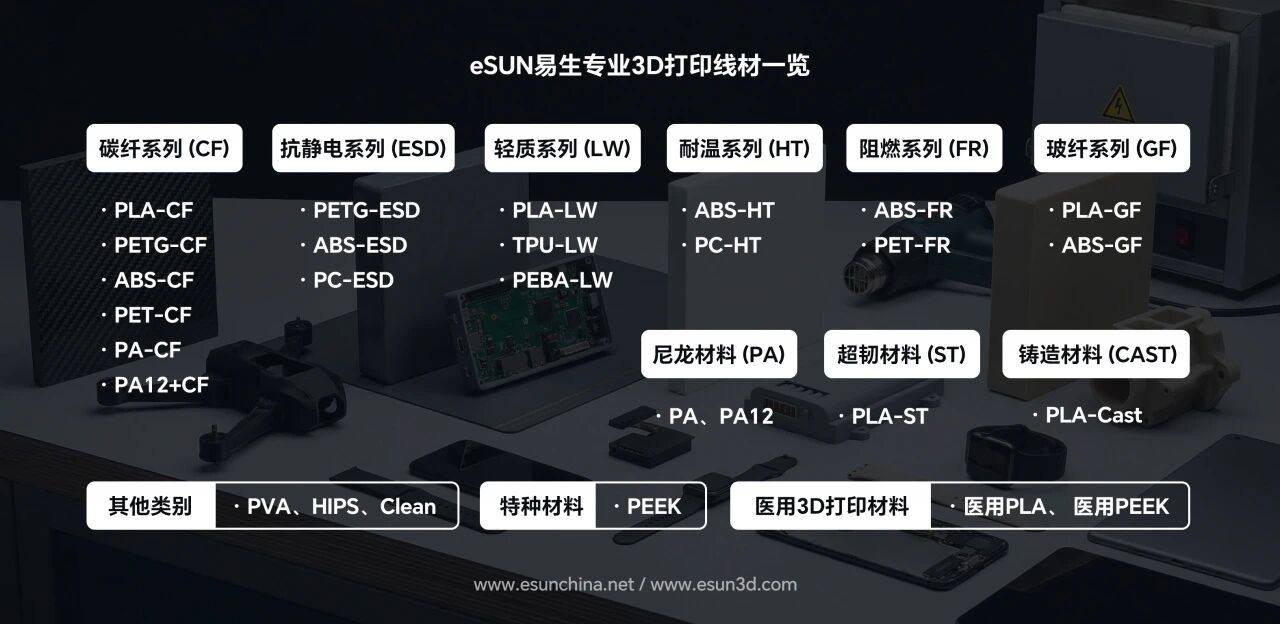 本次展会,eSUN 易生将围绕消费电子及相关应用场景,重点展示——覆盖多性能维度的3D打印材料体系以及结合实际应用场景的解决方案。